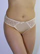 Трусы-слип со средней линией талии. Выполнены из эластичного полотна. На передней детали симметричные вставки из вышивки. Использована плоскошовная обработка.