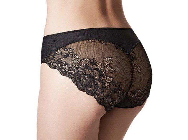 Трусы-слип из эластичной микрофибры, задняя деталь выполнена из кружева с цветочным мотивом. Конструкция с эффектом "танга". Махровая ластовица.