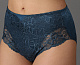 Трусы из эластичного полотна, эластичного кружева, с высокой линией талии. Отделка эластичной декоративной тесьмой.