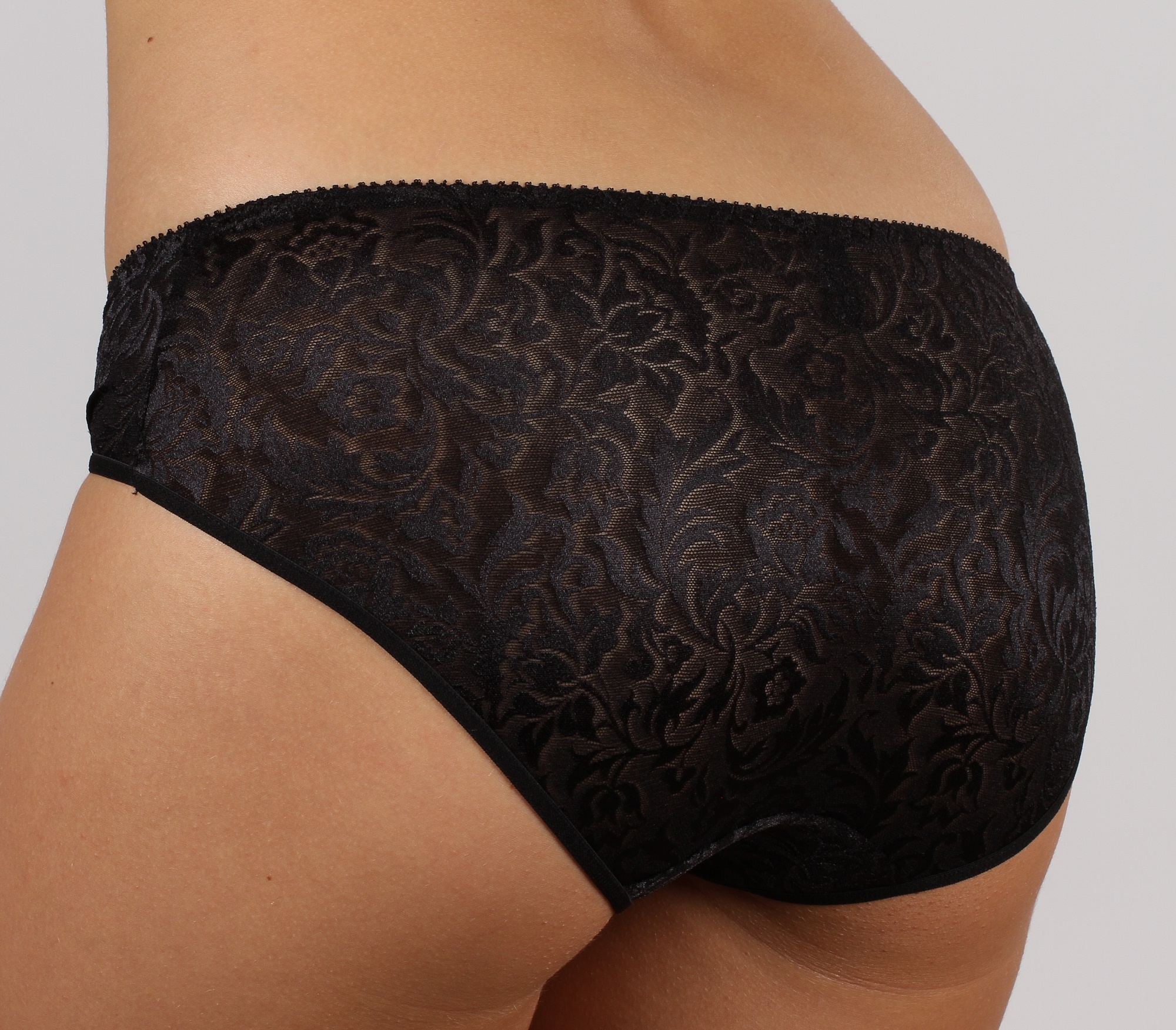 Трусы из эластичного жаккардового полотна , х/б ластовица, с низкой линией талии. Отделка по верху декаративной эластичной тесьмой.Нижние срезы обработаны тесьмой плоским швом.