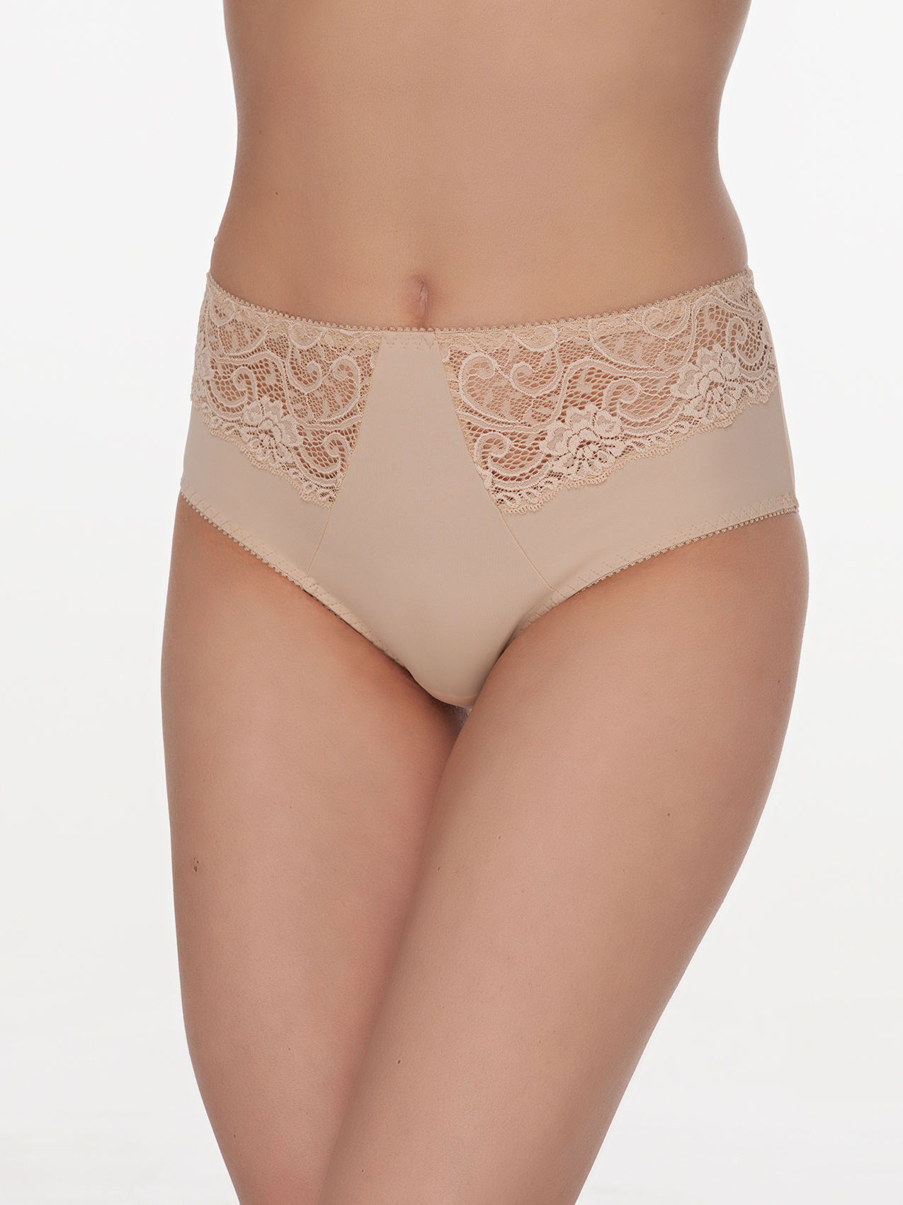 Трусы «слип» из эластичного трикотажного полотна и эластичного кружева. Высокая линия талии.
