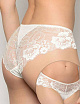Высокие трусы из кружевного полотна с коррекцией средней степени в области живота. Верх прошит эластичной лентой с силиконом.