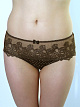 Трусы со средней линией талии. Нижние срезы обработаны тесьмой с ажурным краем. Подкладка ластовицы из хлопкового трикотажного полотна.