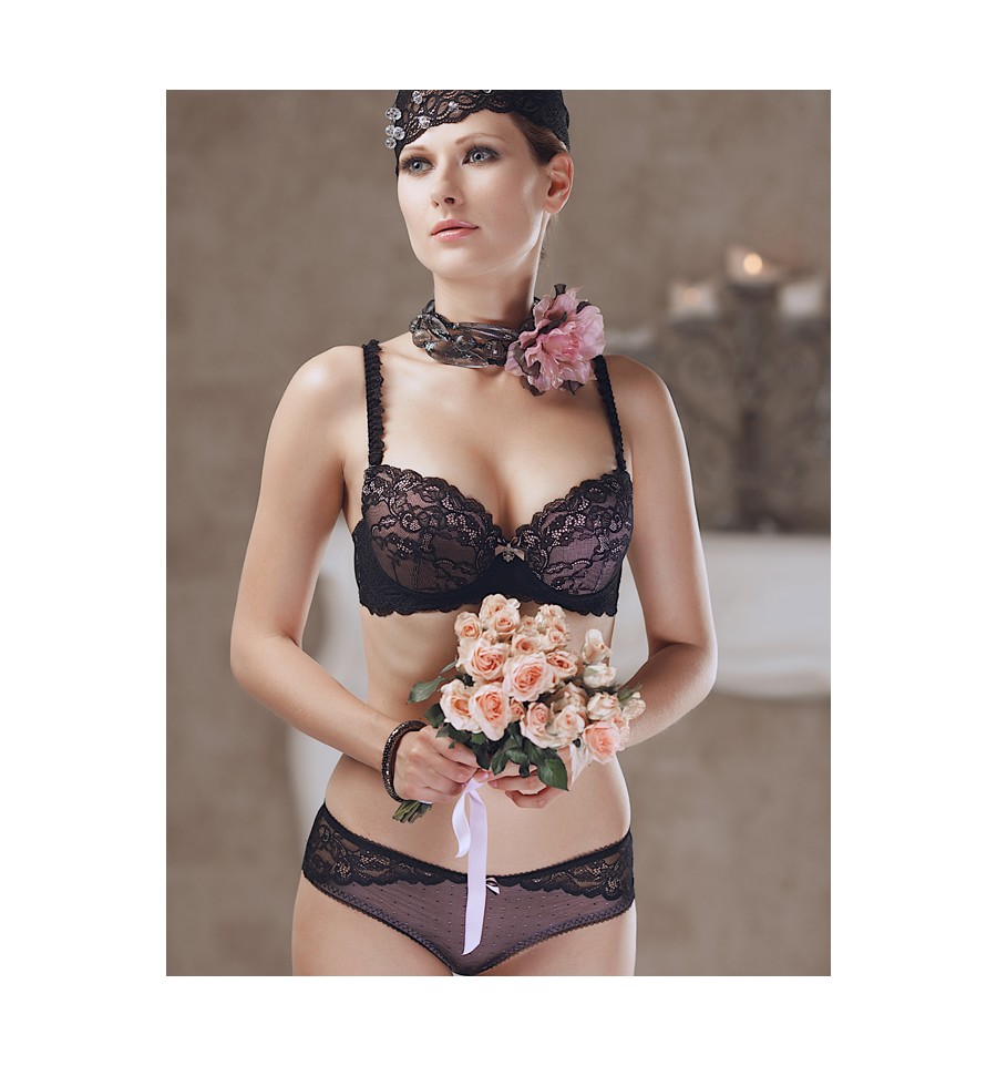 Трусы слипы со средней линией талии. Выполнены из эластичного кружева с цветочным орнаментом. Хлопковая ластовица.