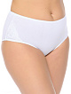 Трусы-слипы с завышенной линией талией сконструированы для особо комфортного ношения, имеют удобные, широкие боковые детали. Изделие выполнено из высококачественного хлопка, сбоку на передней части расположены вставки из эластичного кружева, срезы трусов обработаны отделкой с ажурным краем.