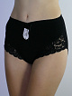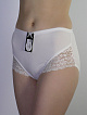 Высокие трусы слипы из плотного хлопкового материала, на передней части кружевная вставка. Сзади вертикальная резинка по центру изделия.