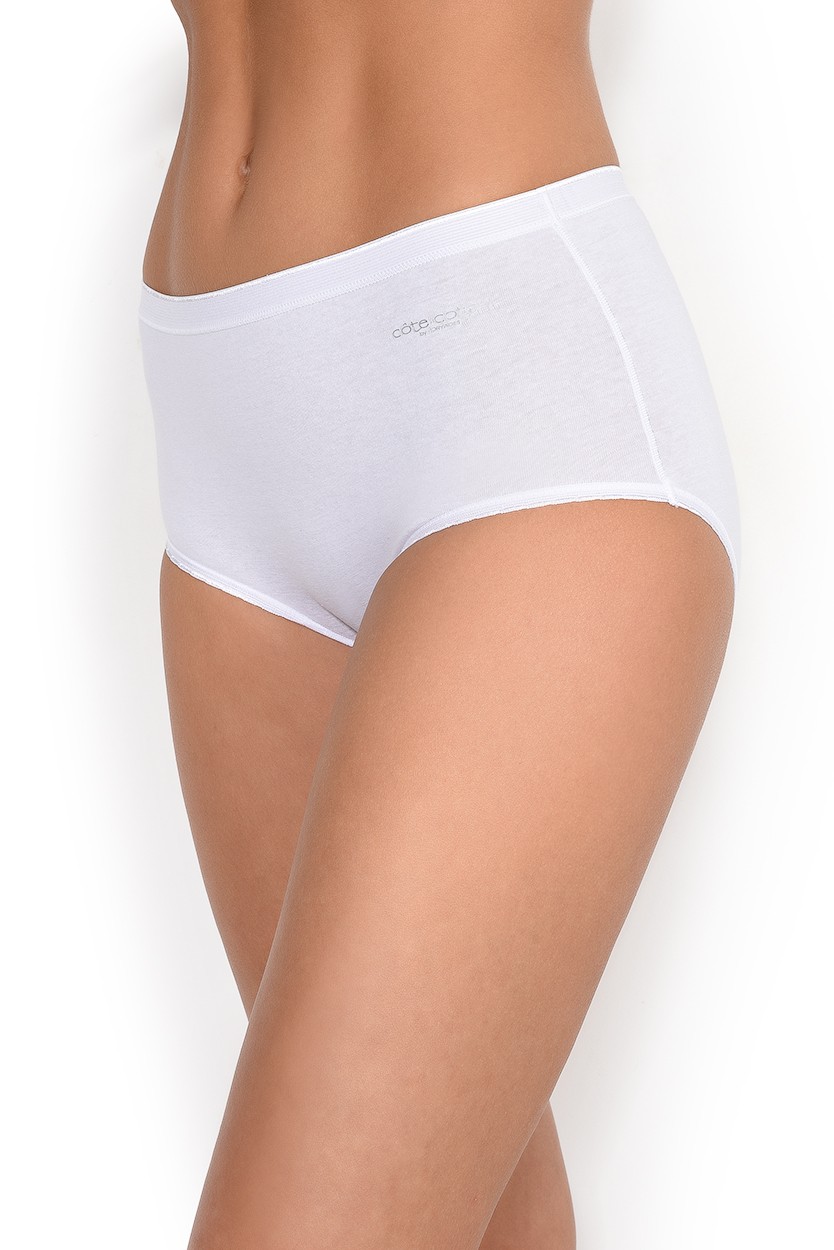 Классические трусы-слипы с высокой талией Cote Coton by Oryades из тонкого хлопкового трикотажа. Плоская резинка на поясе для максимального комфорта. Отделка эластичным кантом по линии бикини. Трусики представлены в классической цветовой гамме.
