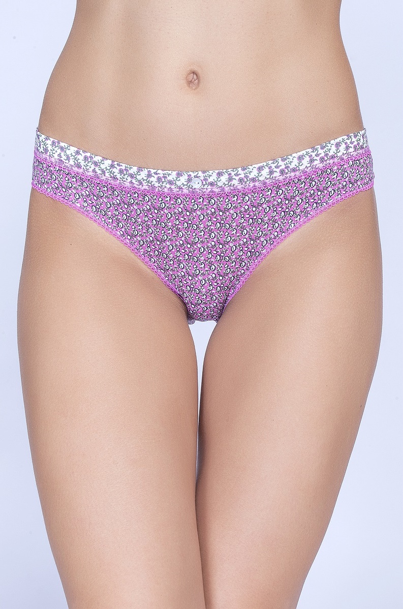 Женские трусы - бикини из высококачественной вискозы с эластаном, с оригинальным цветочным принтом, декорированы пуговицей на передней части изделия.