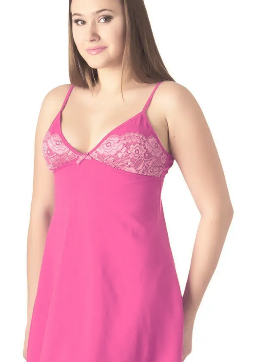 Изящная короткая сорочка из однотонного хлопка, с отрезным лифом "push-up" и летящей юбкой, расширенной книзу. Лиф на подкладке со съёмными внутренними чашками из мягкого поролона, декорирован контрастным кружевом. Бретельки с регуляторами, под грудью и на спинке нежная резиночка.