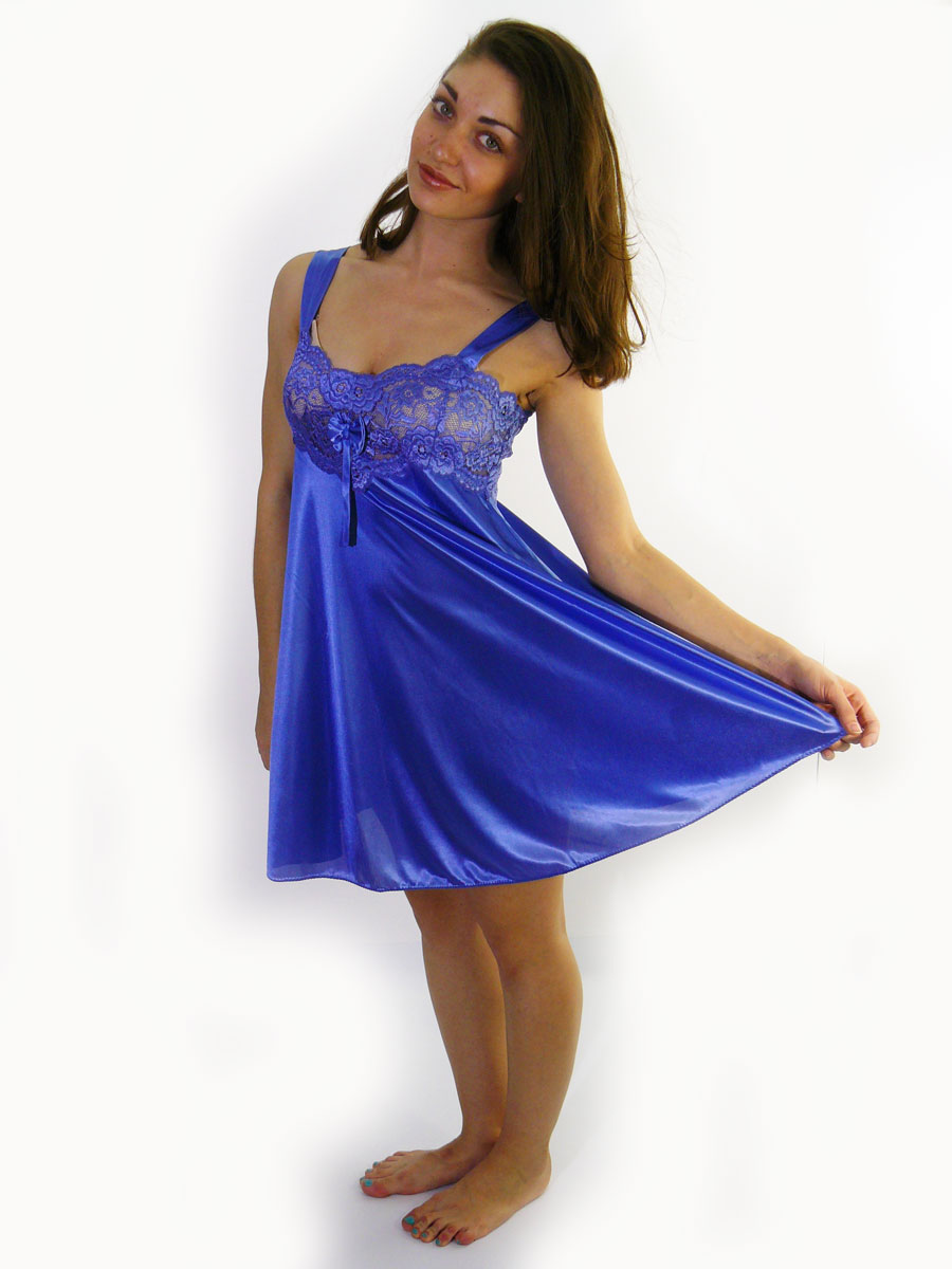 Короткая шелковая комбинация с кружевной отделкой в области груди,