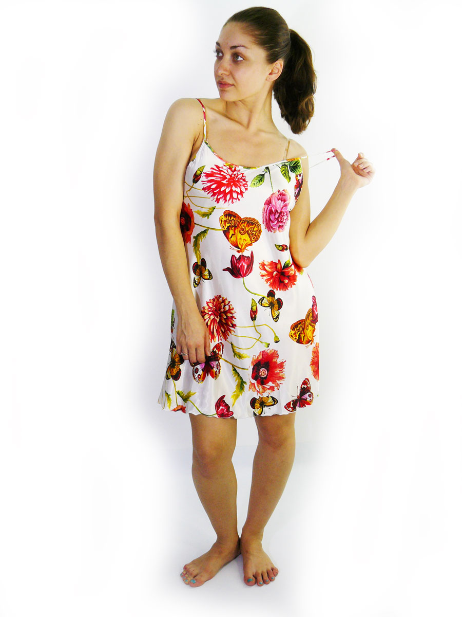 Сорочка приталенная, из атласной ткани, на нерегулируемых тонких бретелях,