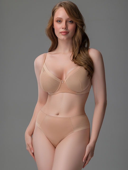 Бюстгальтер "спейсер легкий" с чашкой Bari Leggera (без эффекта пуш-ап, более легкая и тонкая), выполненная из особого "дышащего" материала, комфортного к телу, на косточках. Регулируемые бретели. Застежка в два ряда на три позиции. Боковые детали с пластиковыми потайными вертикальными косточками дублированы эластичной сеткой. Выполнен из высококачественной, ультрагладкой микрофибры с благородным сатиновым блеском и сеточки со стильным лаконичным рисунком вдоль плоского обработанного края. Коллекция "Naomi".