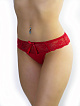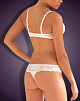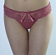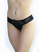 Трусики-стринг из эластичной ткани, сетки и кружева.Передняя делать декорирована отделочной лентой и атласным бантиком.