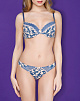 Трусики-стринг из эластичной принтованной ткани и кружева.Передняя деталь декорирована узким кружевом и бантиком.