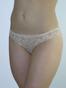 Женские трусы-стринг. По талии украшены кружевной фигурной лентой.