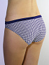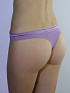 Трусики "стринг" из эластичного гладкокрашенного трикотажного полотна со срдей линией талии. Верхней срез трусов отделан тканью с блеском.