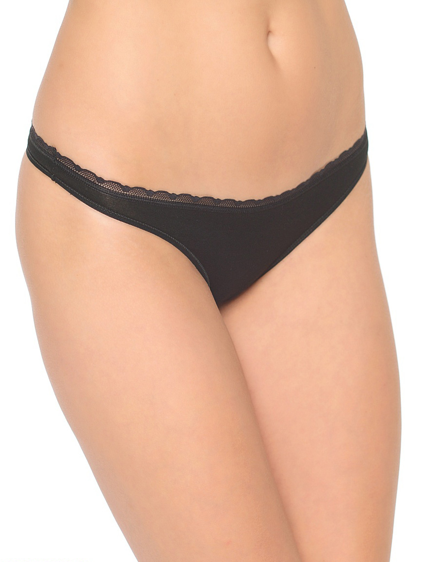 Трусы стринг из эластичного трикотажного полотна и эластичной декоративной тесьмы. Низкая линия талии.