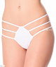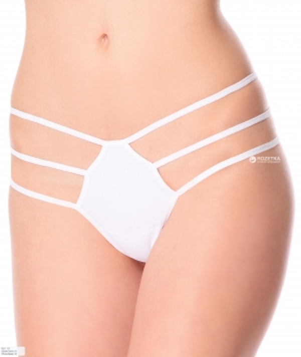 Трусики стринг в виде ромба спереди и треугольника сзади. С каждого бока от передней части к задней тянется по 3 резинки. Места их соединения с задним треугольником украшены стразами.