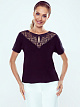 Элегантная блузка с коротким рукавом и каплевидным вырезом, декорированным объемным кружевом с цветочным узором.