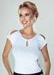 Элегантная блузка с короткими рукавами и вырезом в форме капельки. Плечи модели декорированы двойными разрезами.