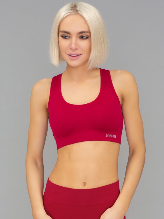 Бесшовный спортивный топ со вкладышами, широкими бретелями и спинкой-борцовкой, выполненный из мягкой эластичной микрофибры. Фронтальная часть модели декорирована надписью "Minimi". Современные бесшовные технологии и материалы позволяют изделию идеально облегать тело, не оставляя следов от боковых швов, создавая максимальный комфорт при активной жизни и во время отдыха.