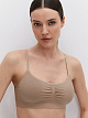 Бесшовный топ на тонких регулируемых бретелях. Изготовлен из высококачественного хлопка, который отлично пропускает воздух, хорошо впитывает влагу, приятно ощущается на теле и подходит для чувствительной и нежной кожи. Превосходно облегает и обеспечивает надежную поддержку благодаря вывязанной резинке и отсутствию боковых швов. Съемные анатомические вкладыши создают дополнительный комфорт и эффектно подчеркивают зону декольте. Вырезы горловины и проймы окантованы эластичной тесьмой.