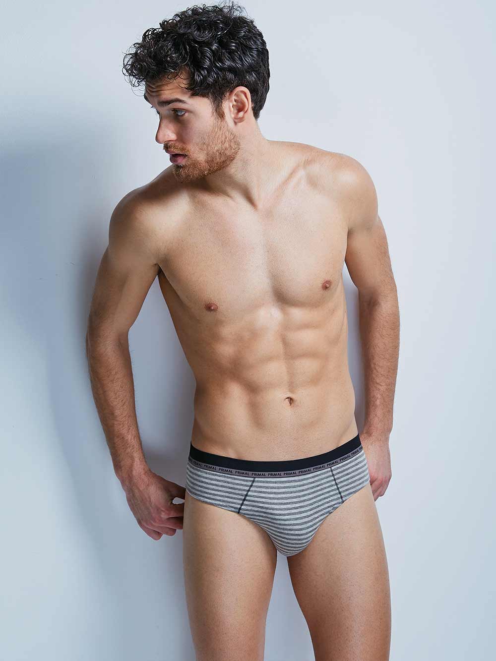 Мужские трусы-слипы из хлопка с эластаном, на поясе широкая резинка с круговой надписью "Primal".