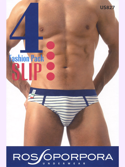 Мужские трусы-слип из хлопка с эластаном, на поясе широкая резинка с нашивкой в виде логотипа бренда и итальянского флага, спереди отделаны контрастной тесьмой, задняя часть бесшовная. В упаковке 4 штуки: 2 с рисунком "полоски", однотонные и меланжевые.