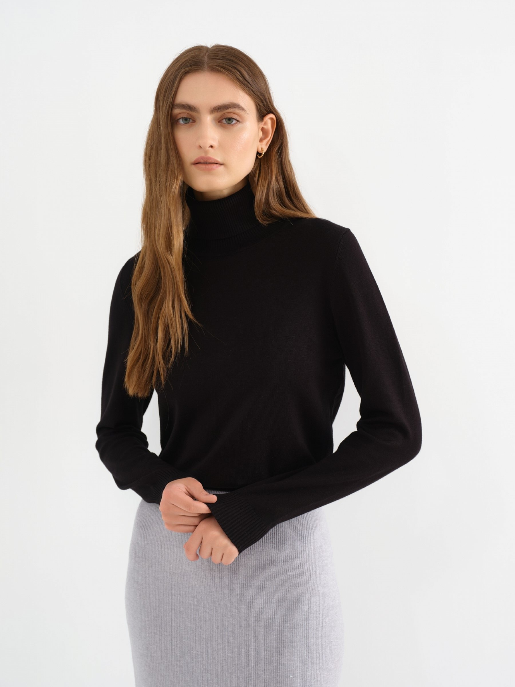 Представляем мини-коллекцию базовых водолазок в классическом исполнении и разнообразных оттенках. Идеальный средний слой вне моды для любого лука. Для этого выполнили изделие в полуприлегающем крое и оптимальной средней длине. Выбрали для него гладкий смесовый трикотаж на основе вискозы с добавлением нейлоновой нити. Такое полотно приятно к телу и удобно в уходе. Двойная горловина в фактурной резинке кашкорсе защищает от холода.