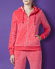 Плюшевый жакет с капюшоном на атласной подкладке и регулировкой объема завязками.Модель с застежкой на молнию, двумя прорезными карманами, резинками на манжетах и по низу изделия.